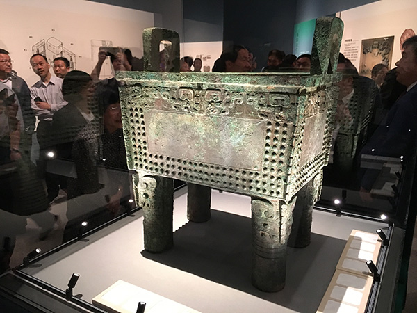 As an example of ancient Chinese craftsmanship, an ox-shaped lamp from the Han Dynasty (206 BC-AD 220) unearthed from Yangzhou, Jiangsu province, is another exhibit. A clever blend of form and functionality, it has small chimneys hidden in the horns of the ox.