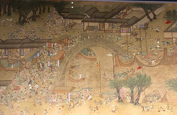 A Tang Dynasty facsimile of Lanting Xu from the Hunan Museum offers a taste of the romantic notions oozing from Wang Xizhi's pen. And in the Ming Dynasty (1368-1644) version of Along the River During Qingming Festival from the Liaoning Provincial Museum, painter Qiu Ying uses a similar layout to the original work to portray his hometown of Suzhou, Jiangsu province.