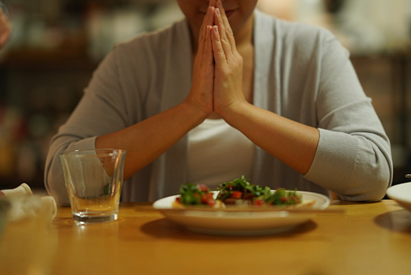 A single diner gives thanks before eating.[Photo provided by Eat Solo] |