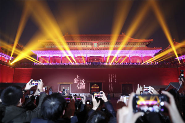 The night scenery at the Palace Museum. [Photo by Feng Yongbin/China Daily] |