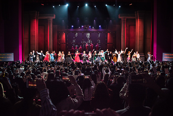 Actors and actresses of Mozart L'Opera Rock meet a full house after a performance in Beijing.[Photo provided to China Daily] |