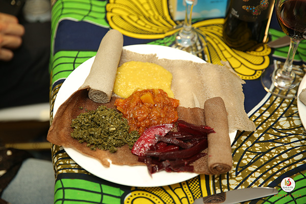 Entrees were Sibanda's Zimbabwean stew served with pap, a cornmeal porridge thick enough to shape, and injera by Ethiopian chef Abenet Belay, who has lived in China for nearly seven years.
