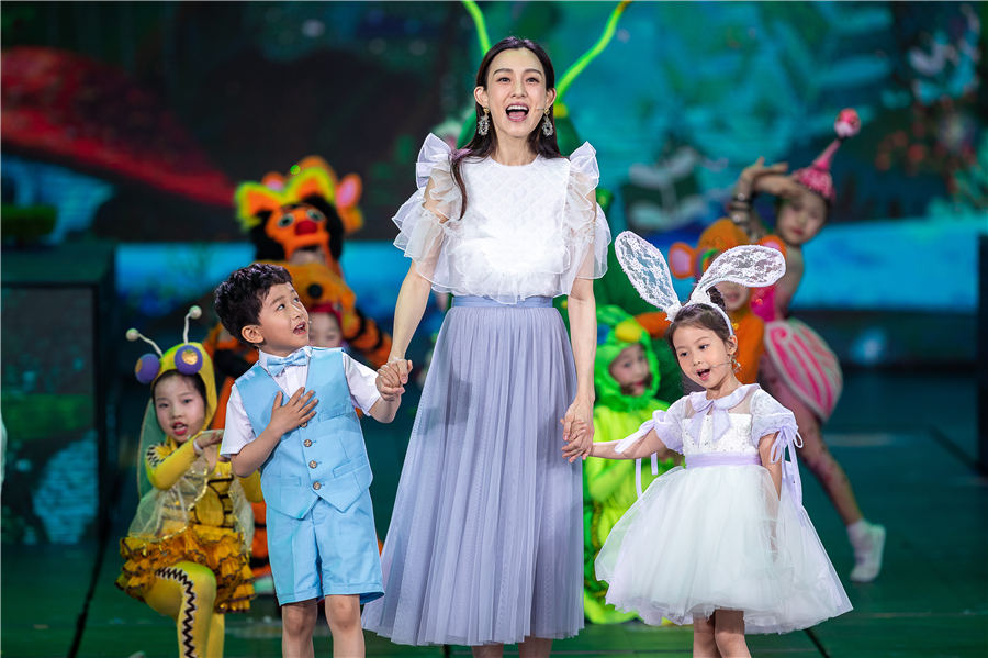 Singer Christine Fan (center) performs onstage. [Photo provided to chinadaily.com.cn] |