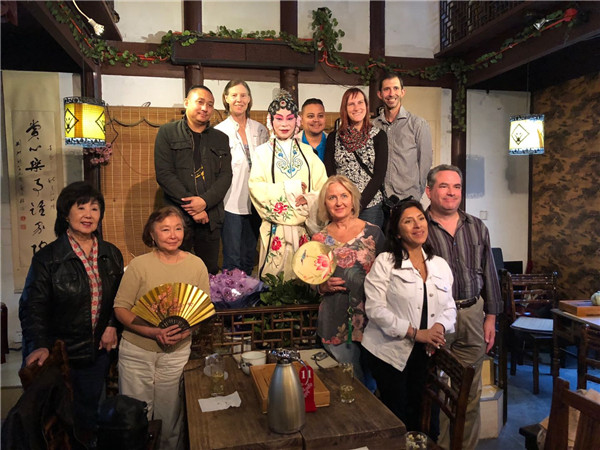 North American tourists take a photo with Kunqu Opera artists in Suzhou. [Photo provided to China Daily] |