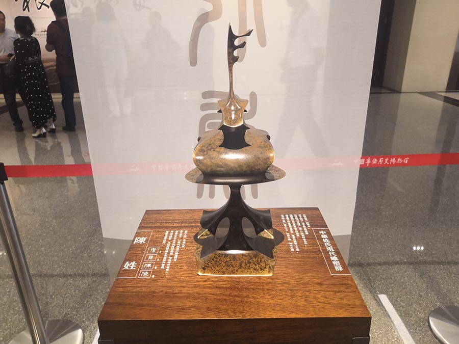 A sculpture exhibition of Chinese family names, which opened on May 18 and runs through July 21, is introducing Chinese family culture at the Overseas Chinese History Museum of China. Bronze sculptures of 101 Chinese family names made by sculptor Li Tinggui are on display, showing names are a bond connecting Chinese people all over the world. [Photo by Wang Ru/China Daily] |