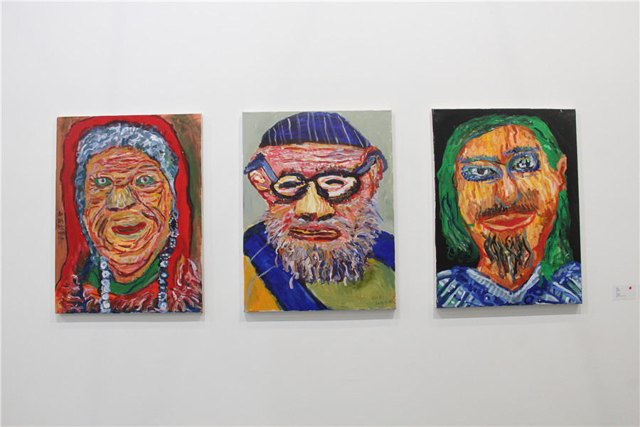 Three portraits by Xie Xinxin. [Photo provided to China Daily] |