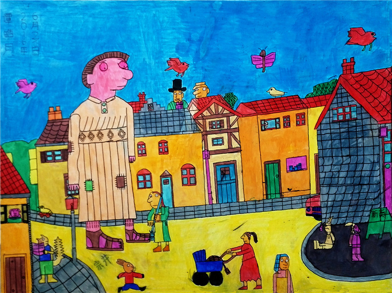 An artwork with straight lines and bright colors by Tan Haoyue. [Photo provided to China Daily] |
