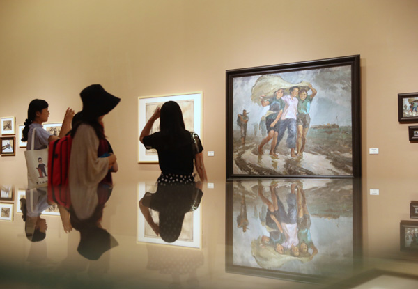 Inscribe the Times, an ongoing exhibition at the National Art Museum of China, reviews Tang Xiaoming's exploration with oil painting. [Photo by JIANG DONG/CHINA DAILY] |