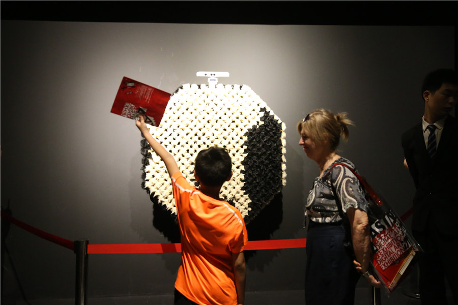 A child views artwork by Israeli artist Daniel Rozin on June 15, 2019. [Photo by Wu Xiaohui/chinadaily.com.cn]