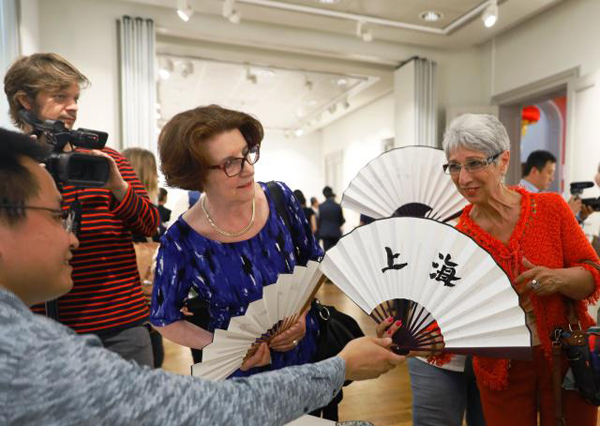 Visitors show interest in traditional Chinese fans at the Dynamic Shanghai event.?[Photo/Xinhua] |
