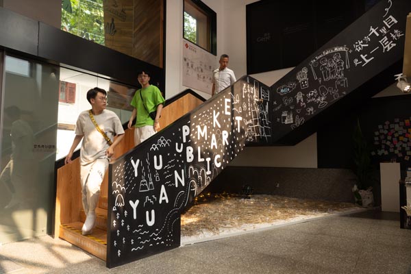 Painted stairs at Yuyuan public market. [PHOTO BY GAO ERQIANG/CHINA DAILY] |