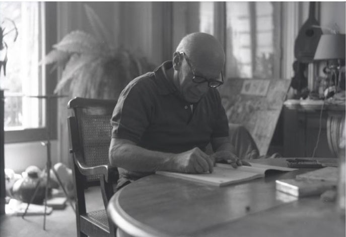 Pablo Picasso works on a piece of writing. [Photo provided to chinadaily.com.cn] |