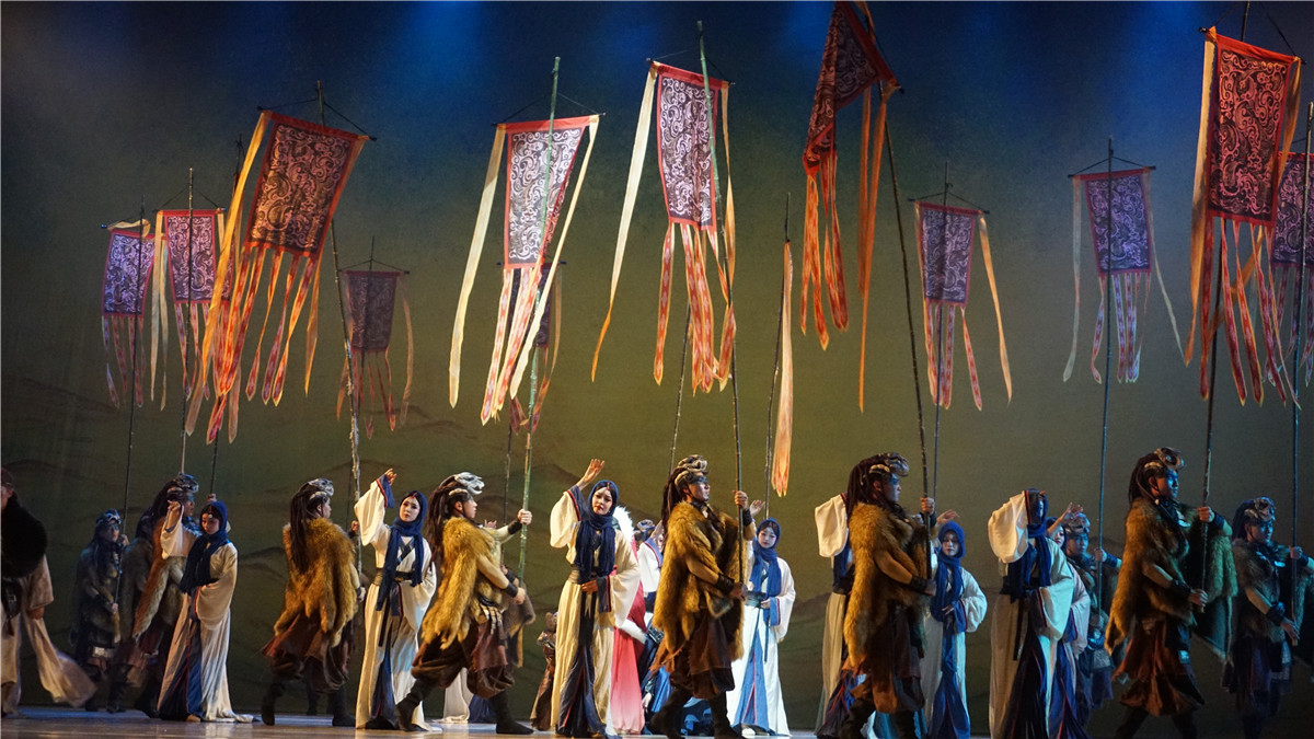 National dance drama Zhaojun is staged at the Wulanqiate Grand Theater in Hohhot, Inner Mongolia autonomous region, on the evening of July 12. [Photo provided to chinadaily.com.cn]