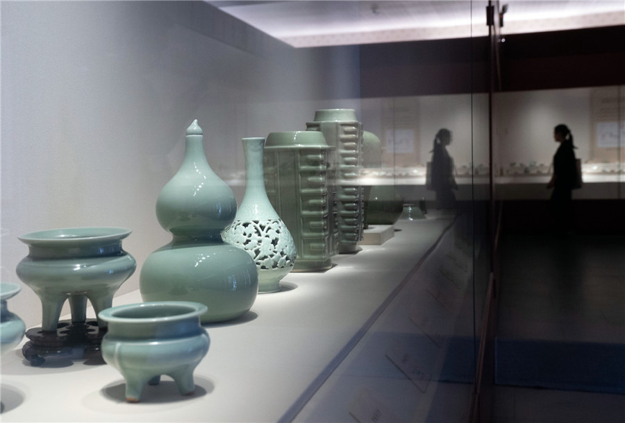 A celadon porcelain exhibition is held at the Palace Museum from July 15 in Beijing. A total of 833 pieces of celadon relics from museum collections of 42 countries demonstrate the development and progress of international cultural exchanges. [Photo/Xinhua]