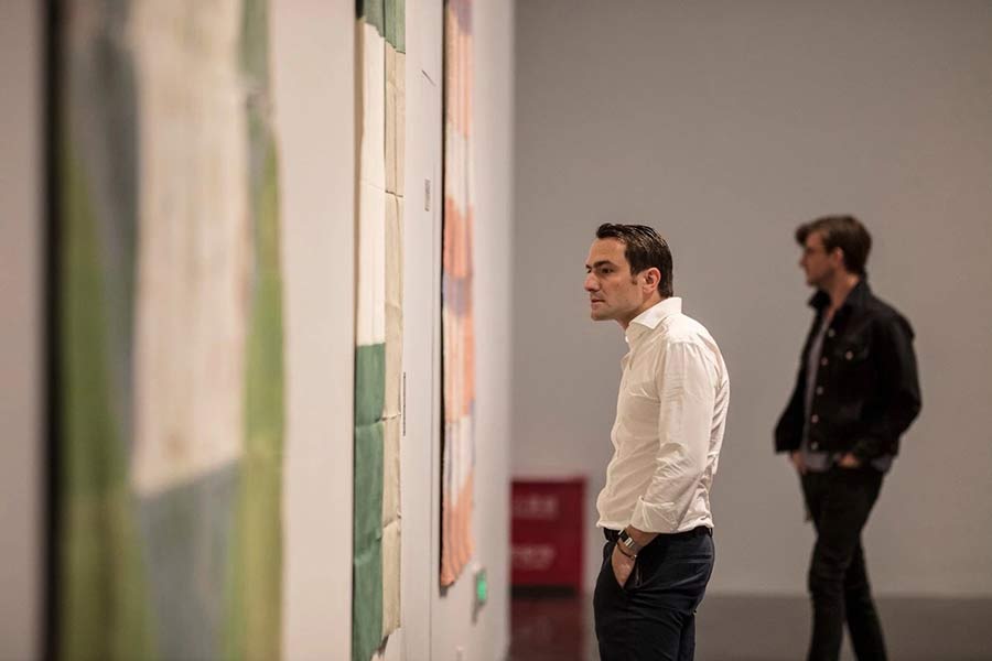 More than 70 paintings and sculptures are on show at The Supports/Surfaces Movement Within and Around, now on at Tsinghua University Art Museum through Aug 20. [Photo provided to China Daily]