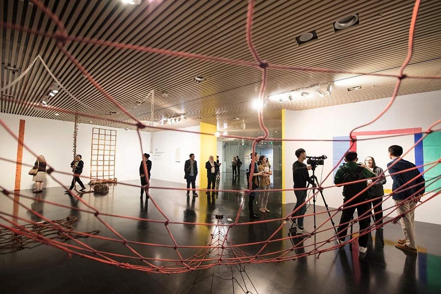More than 70 paintings and sculptures are on show at The Supports/Surfaces Movement Within and Around, now on at Tsinghua University Art Museum through Aug 20. [Photo provided to China Daily]