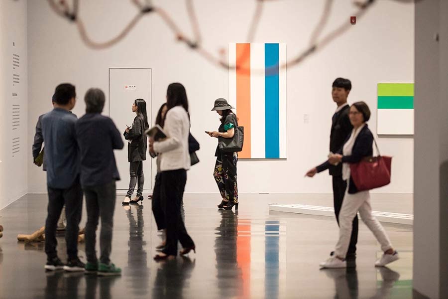 More than 70 paintings and sculptures are on show at The Supports/Surfaces Movement Within and Around, now on at Tsinghua University Art Museum through Aug 20. [Photo provided to China Daily]