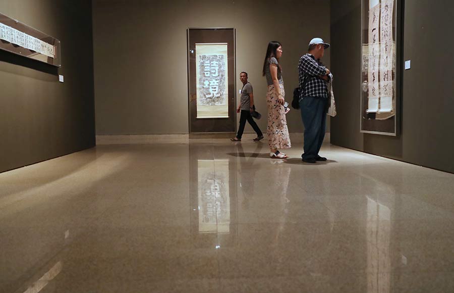 A selection of Kim Chong-hui calligraphic works are now on show at the National Art Museum of China through Aug 23, paying homage to his role in bridging Chinese and Korean scholars and artists. [Photo by Jiang Dong/China Daily]
