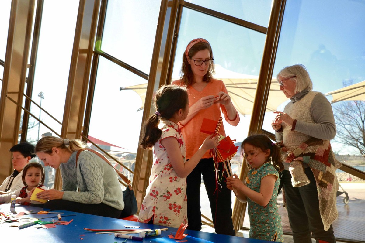 As children and their parents were making paper dragons or lions, some seniors sat down to enjoy Chinese dances and songs in the National Museum of Australia on Sunday, when the Chinese Festival Day attracted thousands of visitors.