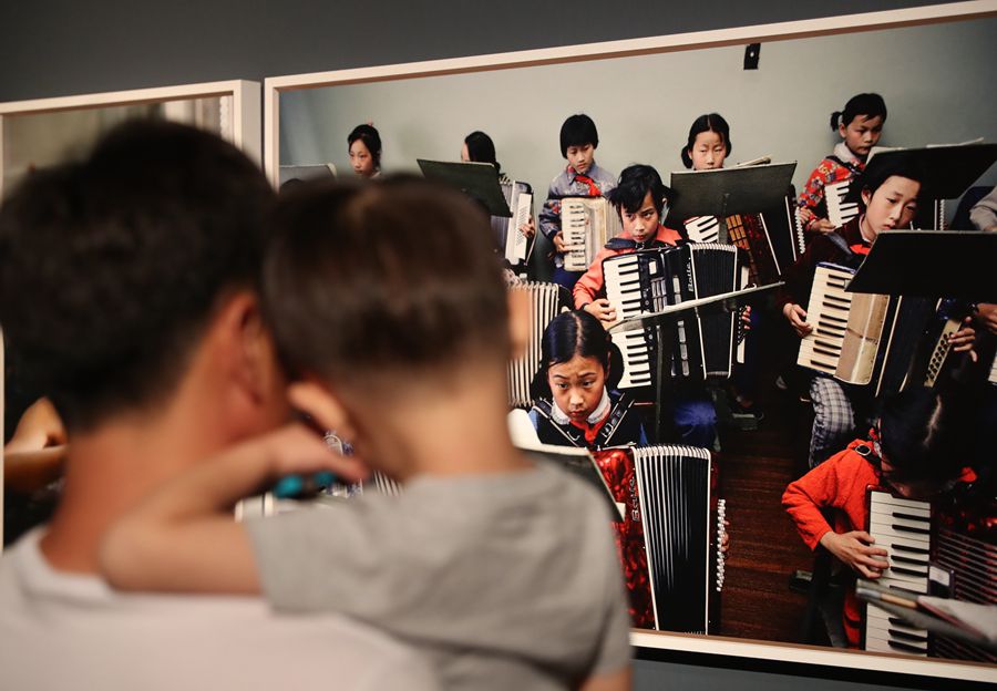 A picture taken by French photographer Bruno Barbey in 1980 shows a class of young students practicing the accordion at Shanghai Children's Center.[Photo by Jiang Dong/China Daily] |