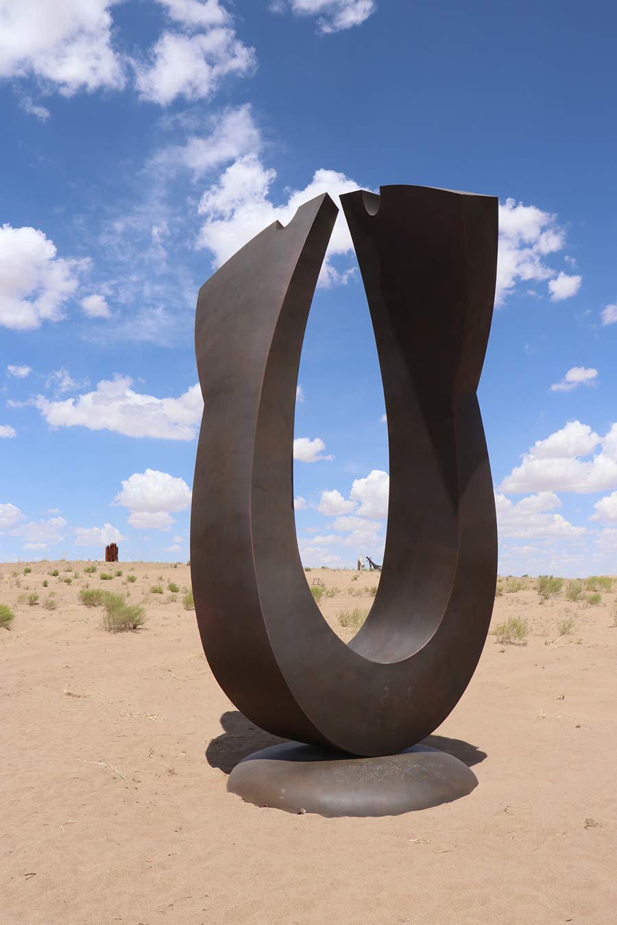 The 2rd International Desert Sculpture Symposium & Land Art Festival features artwork displayed in a desert setting, like this one in Minqin county, Wuwei city, Northwest China's Gansu province, July 20, 2019. [Photo provided to China Daily]