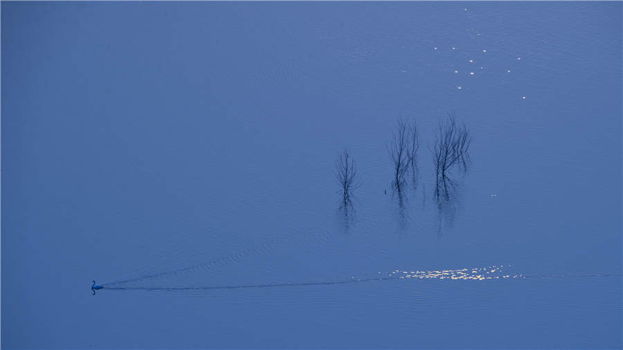 The exhibition Blue Journey at the 798 Art District puts swans in the spotlight through more than 90 images from nature taken by photographer Wang Zhi from Central China's Henan province. The photographs, which span 2006 to 2018, capture the pure elegance of swans as they soar, play, dance or rest in natural settings.