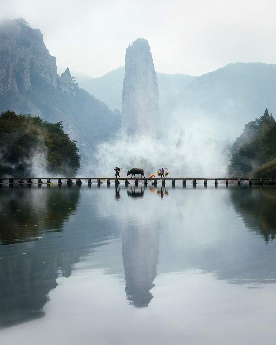 Jord Hammond's photo shows farmers crossing a bridge with their animals in the Xiandu scenic area of Jinyun county, East China's Zhejiang province. [Photo provided to chinadaily.com.cn] |