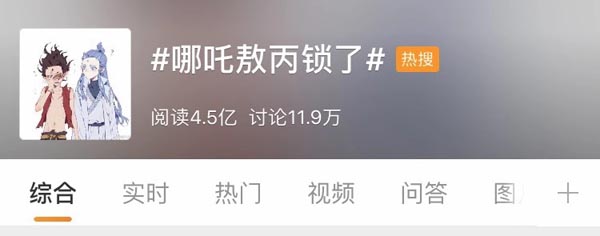 #Ne Zha and Aobing are a couple# has been trending on Weibo since the animated feature Ne Zha was released Friday. [Photo/Weibo]