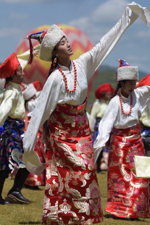Performances with unique local cultural characteristics are staged at the opening ceremony of the 4th Silk Road (Dunhuang) International Cultural Expo and the 9th Dunhuang Tour-Silk Road International Tourism Festival, in Hezuo city, capital of Gannan Tibetan autonomous prefecture in Northwest China's Gansu province, July 30, 2019. [Photo/Xinhua]