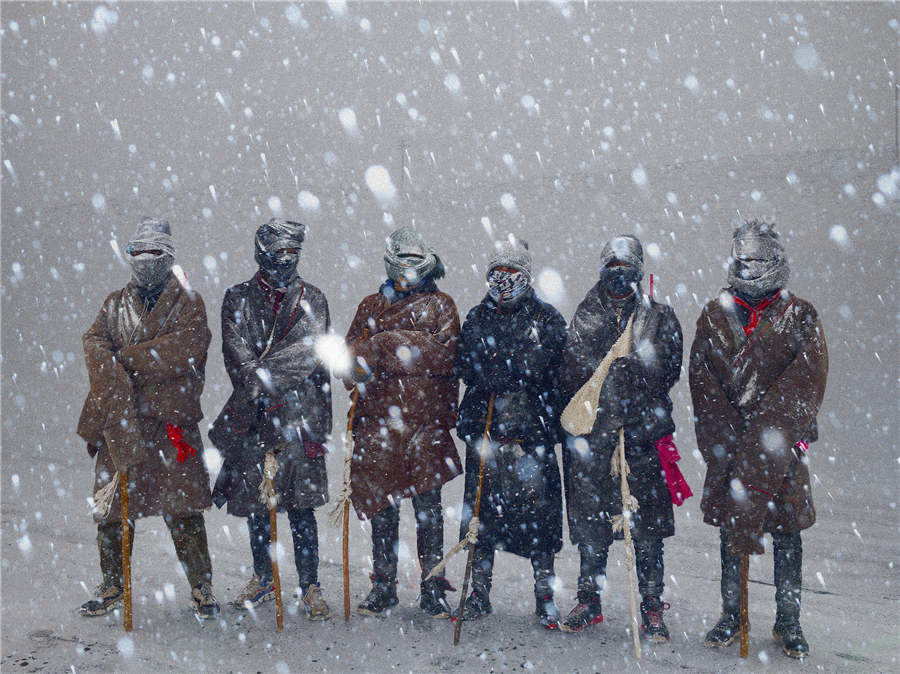 Pilgrims in the snow [Photo by Hu Guoqing/cpanet.org.cn]