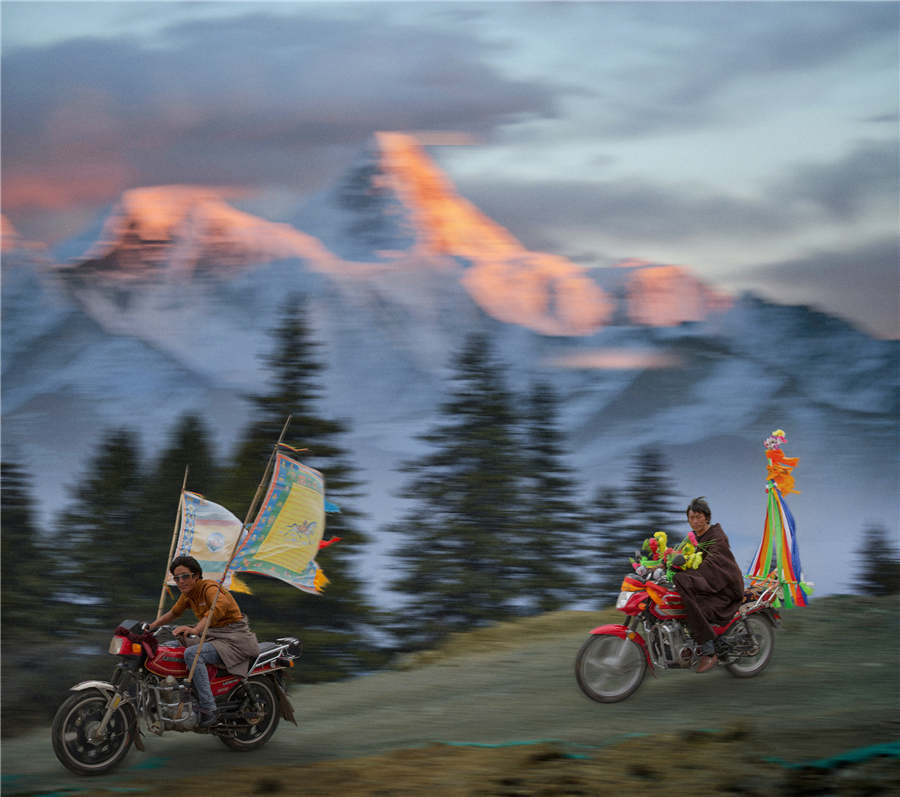 Tibetan people cross the grasslands of Gongga Mountain [Photo by Hu Guoqing/cpanet.org.cn]