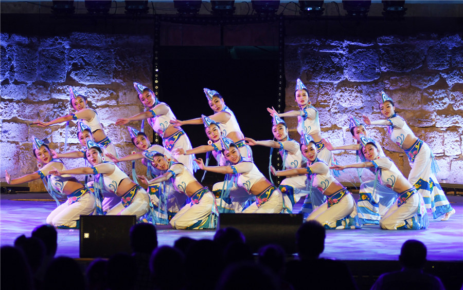 Chinese performers on stage during the Carthage International Festival held in Tunis, Tunisia, on Aug 6, 2019. [Photo/Xinhua]