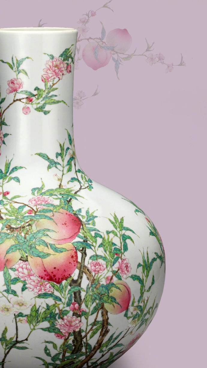 A famille rose globular-shaped vase painted with peaches from the Yongzheng Period of the Qing Dynasty [Photo/Official Weibo account of the Palace Museum]