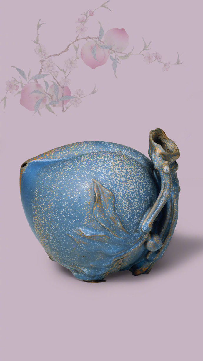 A grayish blue Yixing kiln glazed peach-style water container, or shui zhu [Photo/Official Weibo account of the Palace Museum]