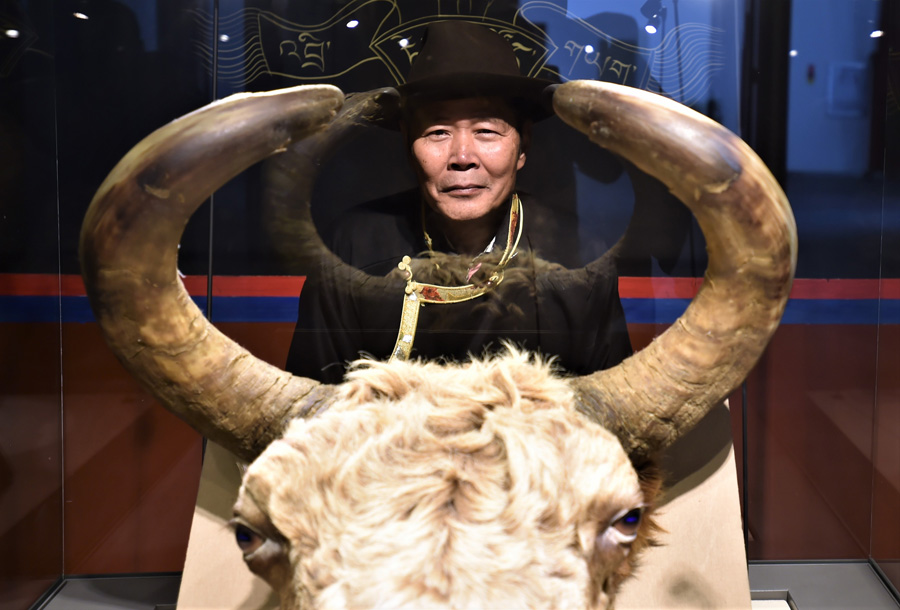 Wu Yuchu poses for a photo at the Yak Museum. [Photo/Xinhua] |