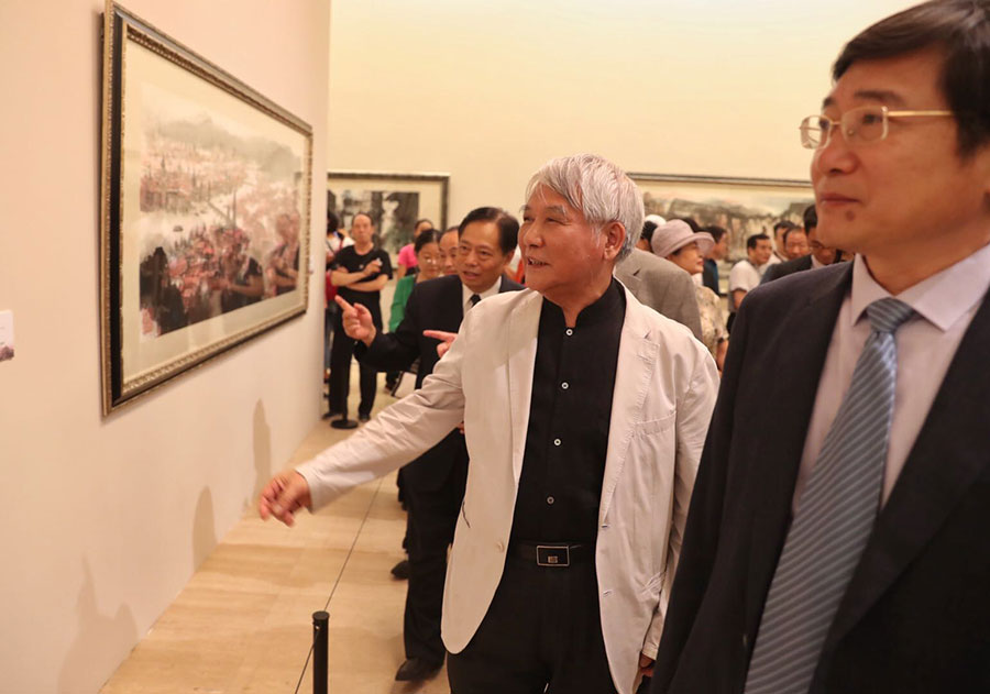 Scenes from the Belt and Road, an exhibition now on at the National Art Museum of China through Aug 11, shows artist Chiang Ming-shyan's colored ink paintings. [Photo by Jiang Dong/China Daily]