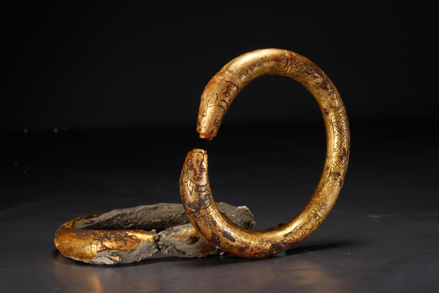 Cultural relics recovered on Nanhai One, such as gold bracelets, show the prosperous trade along the Maritime Silk Road in the Southern Song Dynasty (1127-1279). [Photo provided to China Daily] |