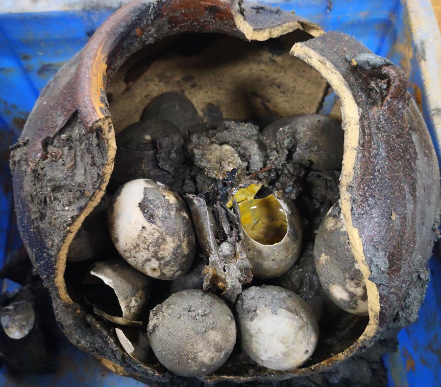 A jar of salted duck eggs found in the wreckage. [Photo provided to China Daily] |