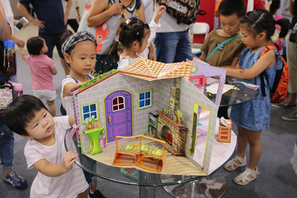 Children look at a three-dimensional book display at last year's event.[Photo by Wang Zhuangfei/China Daily] |