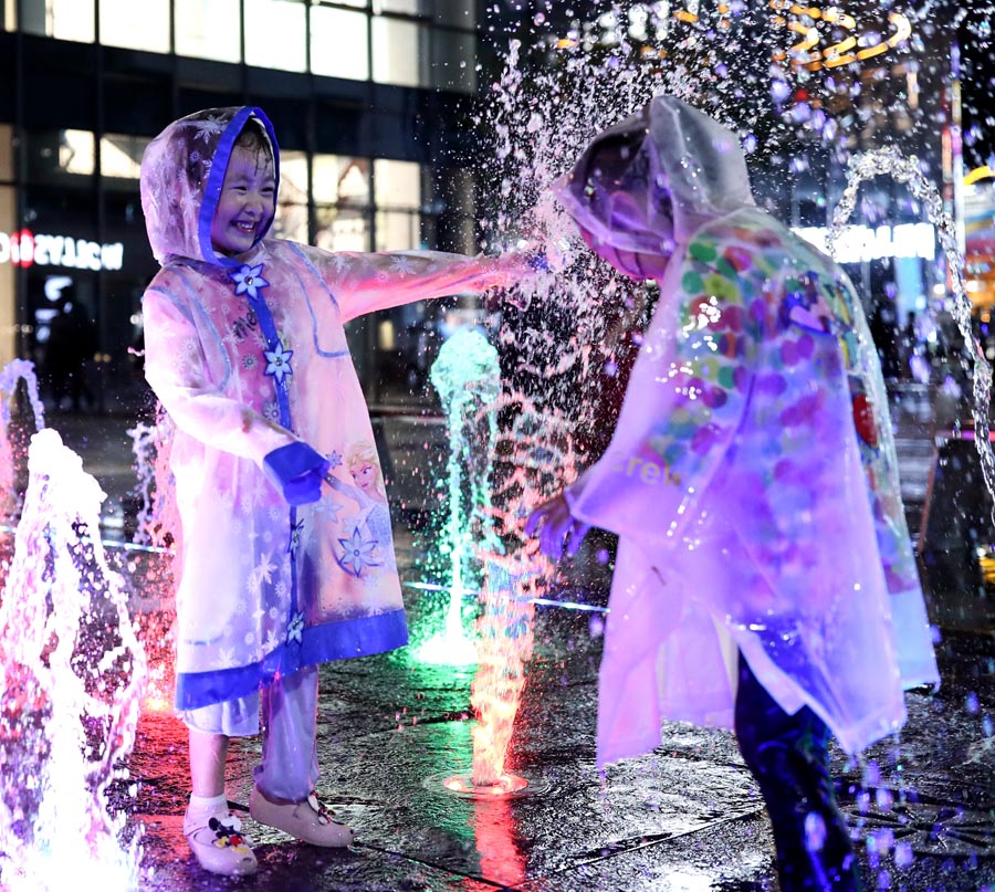 Little children romp happily by a fountain in Haidian district. [Photo by Feng Yongbin/China Daily] |