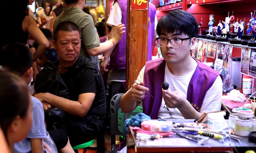 A folk artist makes clay figurines for tourists [Photo by Feng Yongbin/China Daily]