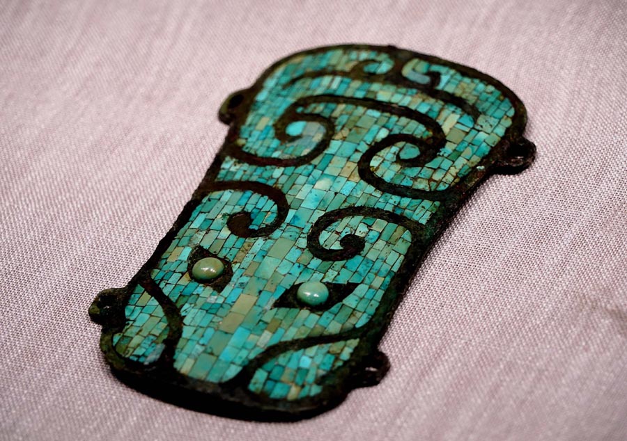 Photo taken on Aug 27, 2019 shows a bronze plaque during an exhibition at Zhengzhou Museum in Central China's Henan province. [Photo/Xinhua]