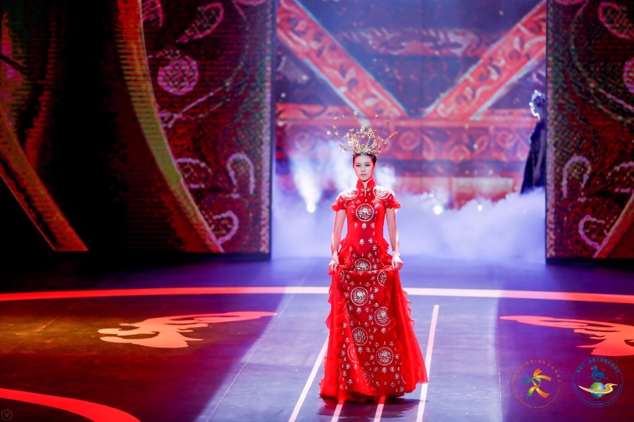 A model presents costume designer Chu Yan’s ancient-style dresses at a performance in Dunhuang, Northwest China’s Gansu province, Aug 31, 2019. [Photo provided to chinadaily.com.cn]