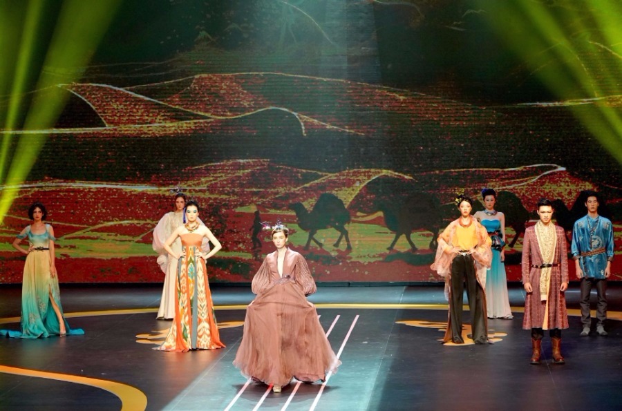 Models present costume designer Chu Yan’s ancient-style dresses at a performance in Dunhuang, Northwest China’s Gansu province, Aug 31, 2019. [Photo provided to chinadaily.com.cn]