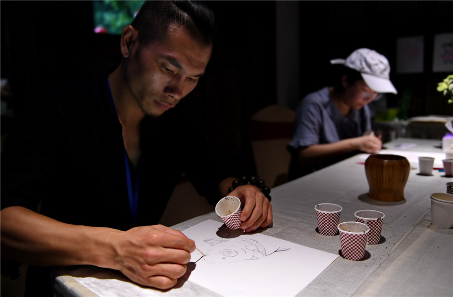 A draft of a painting by Gong with dyed tea powder. [Photo/Xinhua]