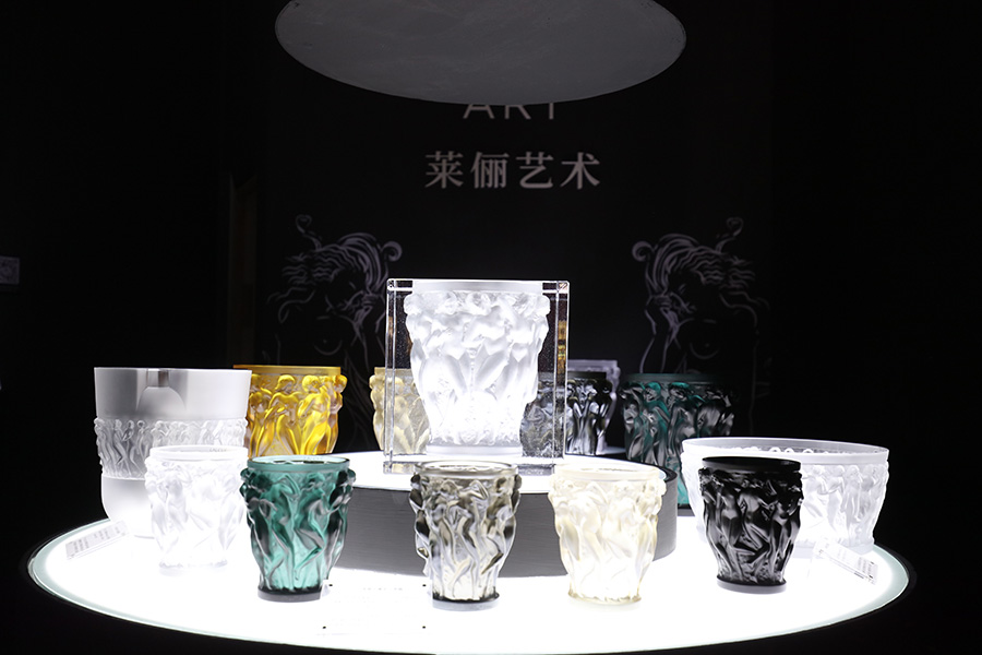 Late French designer Rene Lalique is recognized as "a sculptor of luminary". This spirit is also reflected in several works now on show at an exhibition in Beijing that were created by designers at the luxury brand Lalique, founded in 1888, and by artists working in collaboration with the brand. [Photo provided to China Daily] |