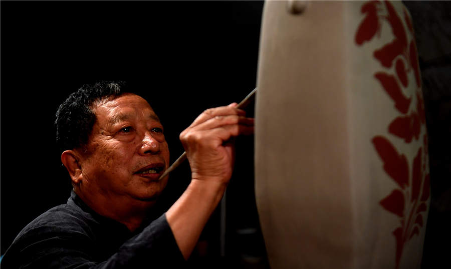 Liu Lizhong makes Cizhou Kiln porcelain at a museum in Handan city, North China's Hebei province, Sept 12, 2019. [Photo/Xinhua]
