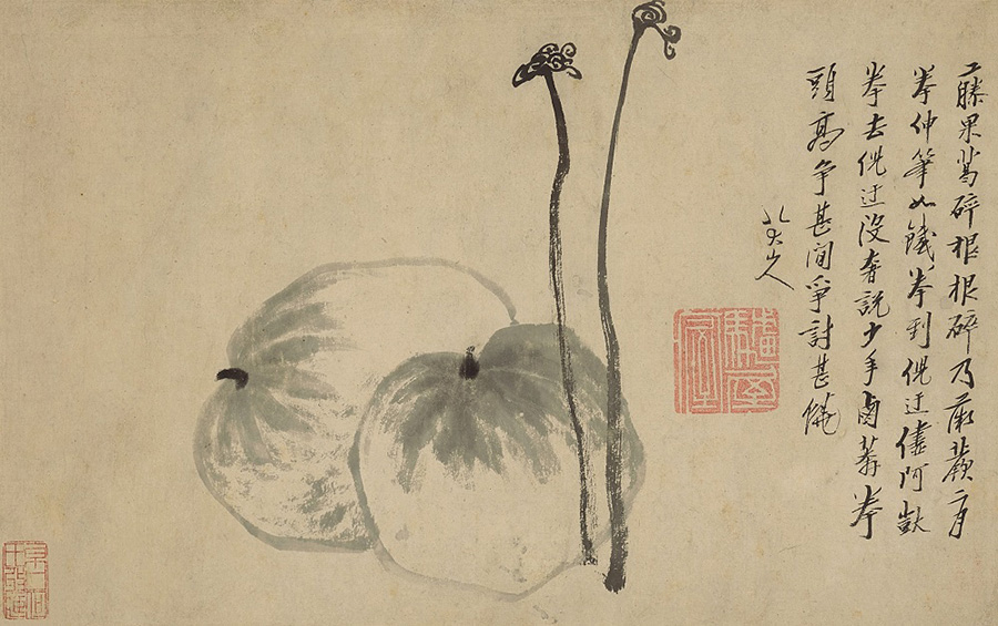 Fruits and Brackens, an ink painting by Bada Shanren. [Photo provided to China Daily]