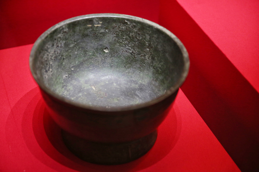 A bronze gui vessel on show. [Photo by Jiang Dong/China Daily]