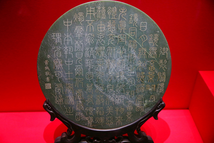 An 18th-century jade plate on show. [Photo by Jiang Dong/China Daily]